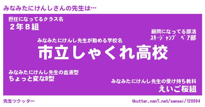 | 伝説のあだ名 | 『伝説のスナイパーみなみたにけんし』 |