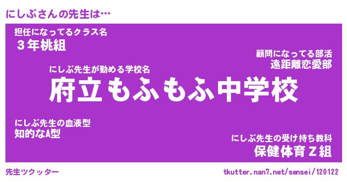 | 意味不明あだ名 | 『ペロリンにしぶ』『にしぶフォーエバー』 |