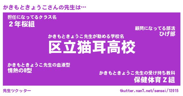 | ヒーロー風カッコイイあだ名 | 『スーパーカキモトキョウコ』 |