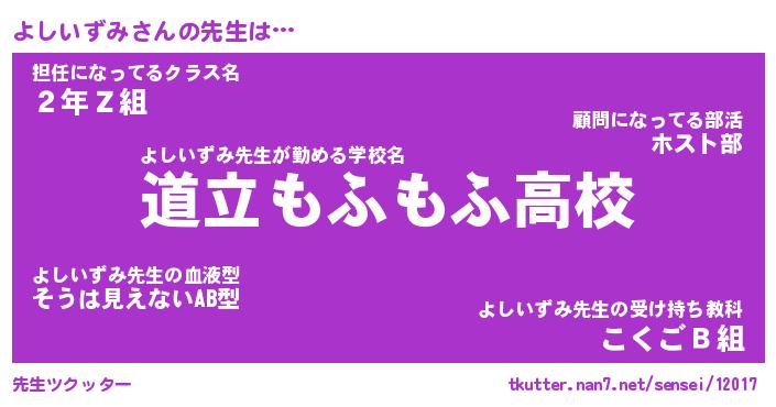 | 胡散臭い通販商品みたいなあだ名 | 『モテモテ間違いなし水晶球…その名も「よしいずみ」』 |