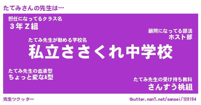 | ヒーロー風カッコイイあだ名 | 『スーパータテミ』『ウルトラたてみマン』 |