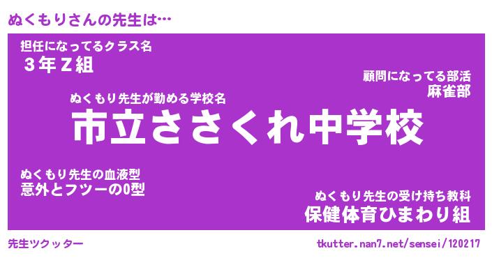 | ヘコむあだ名 | 『ぬくもー』『レバニラ』『ぬくっ子』 |