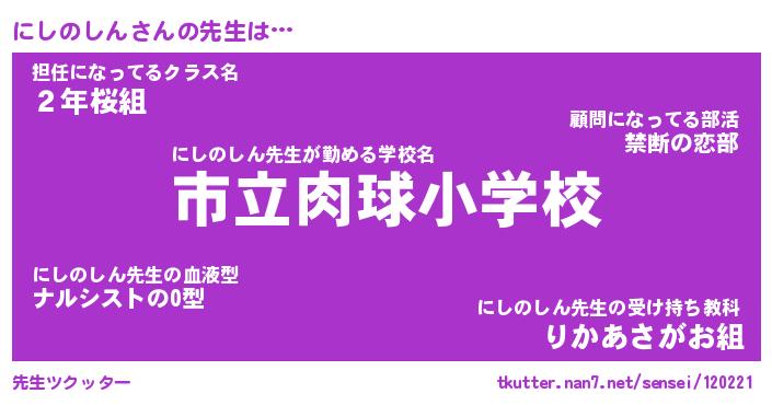 | 胡散臭い通販商品みたいなあだ名 | 『必ず成功する水晶球…その名も「にしのしん」』 |
