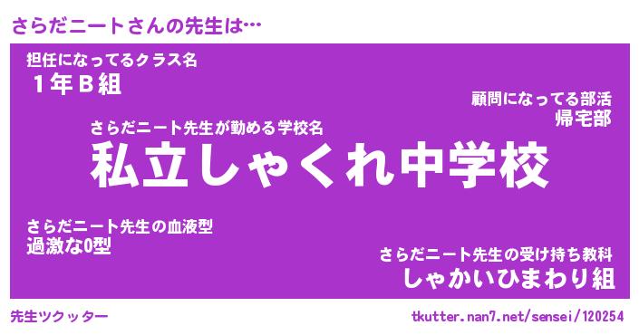| 伝説のあだ名 | 『伝説のスナイパーさらだニート』 |