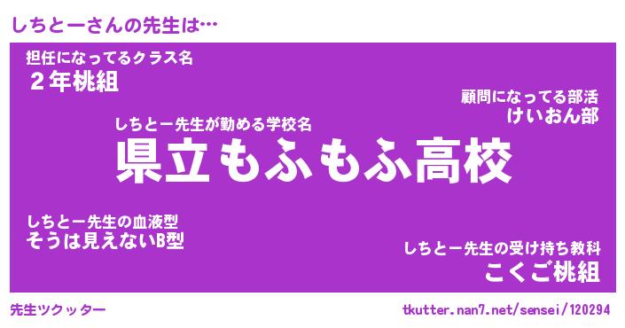 | 男性向けラノベタイトル風あだ名 | 『しちとーの憂鬱』 |