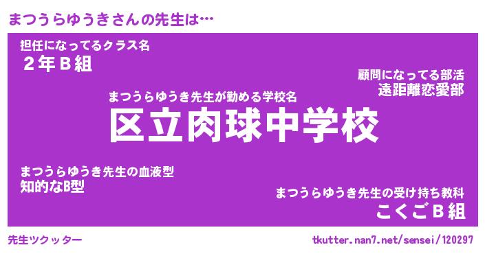 | ヒーロー風カッコイイあだ名 | 『スーパーマツウラユウキ』 |