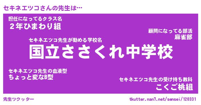 | 伝説のあだ名 | 『伝説のスナイパーセキネエツコ』 |
