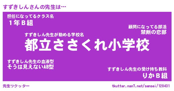 | ファンタジー風あだ名 | 『スズフェル』『エターナルスズキシンー』 |