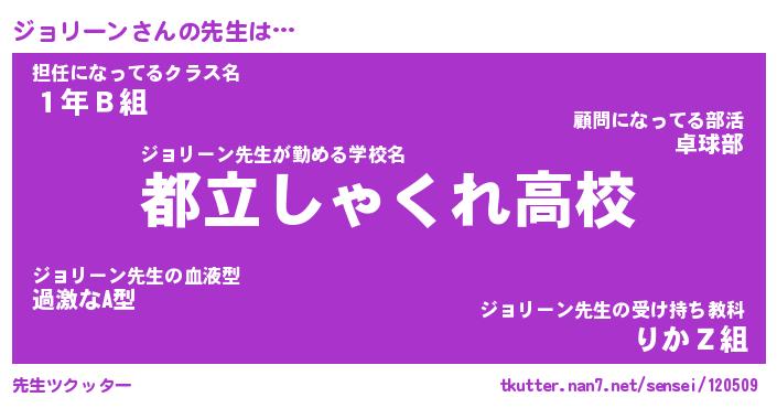 | ヒーロー風カッコイイあだ名 | 『スーパージョリーン』『天弓騎士ジョ』 |