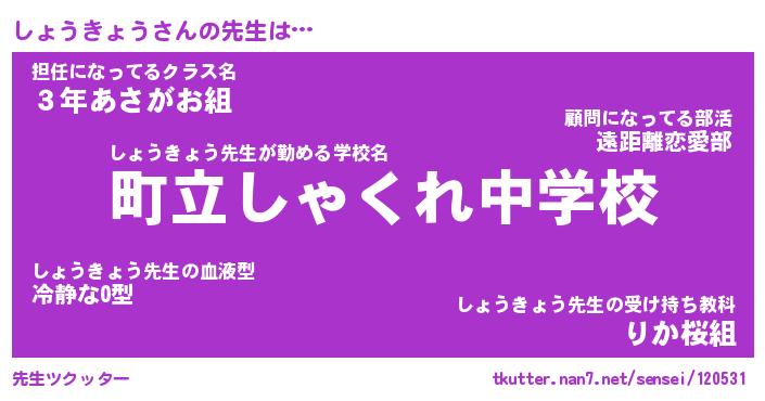 | ヒーロー風カッコイイあだ名 | 『スーパーショウキョウ』『暗黒騎士ショ』 |