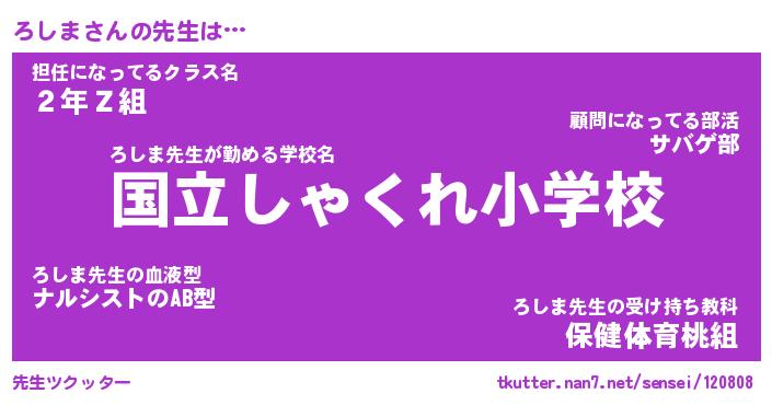 | 伝説のあだ名 | 『伝説のスナイパーろしま』 |
