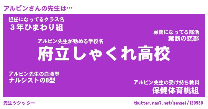 | 伝説のあだ名 | 『封印されしスナイパーアルビン』 |