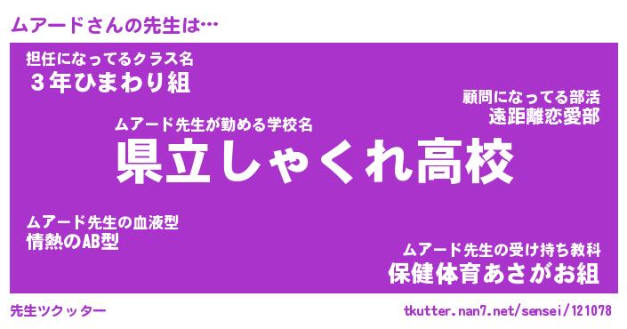 | 意味不明あだ名 | 『ペロリンムアード』『永久保存ムアード』 |