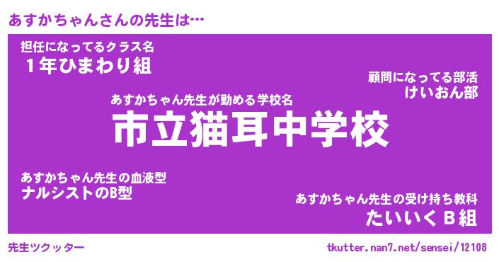 | ヘコむあだ名 | 『あすにー』『牛乳』『あすを』 |