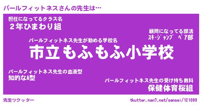 | 男性向けラノベタイトル風あだ名 | 『パールフィットネスの憂鬱』 |