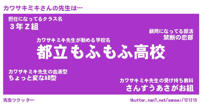 | ヒーロー風カッコイイあだ名 | 『スーパーカワサキミキ』『黄金騎士カワ』 |