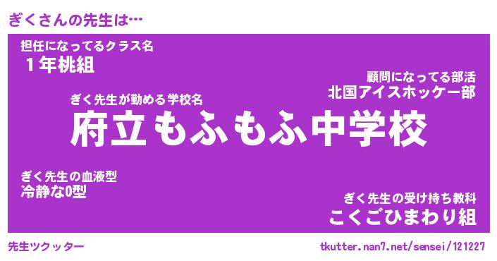 | ヘコむあだ名 | 『ぎくにゅー』『豆乳』『ぎくっ子』 |