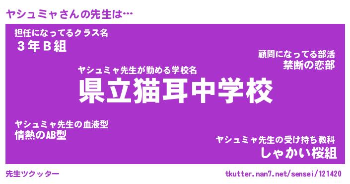 | ヒーロー風カッコイイあだ名 | 『スーパーヤシュミャ』『炎刃騎士ヤシ』 |