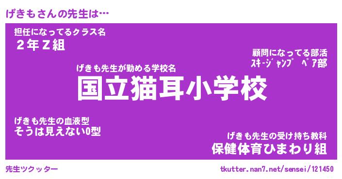 | ヘコむあだ名 | 『げきにー』『なまこ酢』『げきを』 |
