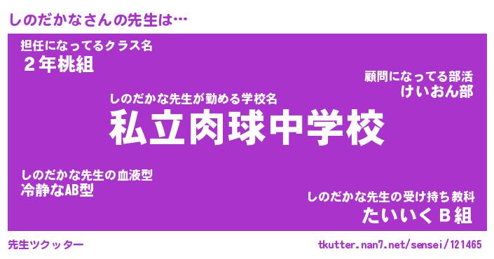 | 胡散臭い通販商品みたいなあだ名 | 『必ず成功するブレスレット…その名も「しのだかな」』 |