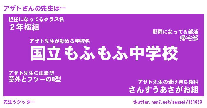 | ポケモン風あだ名 | 『アザチュウ』『アザトダネ』 |