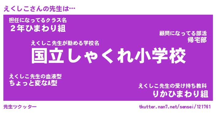 | 伝説のあだ名 | 『伝説のスナイパーえくしこ』 |