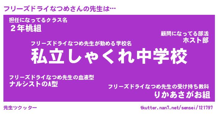 | 伝説のあだ名 | 『伝説のスナイパーフリーズドライなつめ』 |