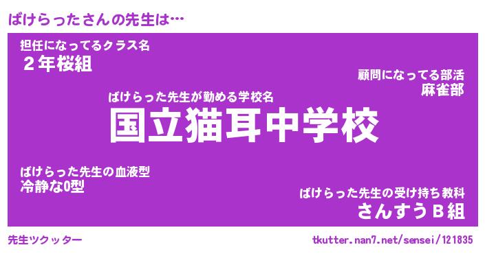 | ファンタジー風あだ名 | 『バケフェル』『エターナルバケラッター』 |