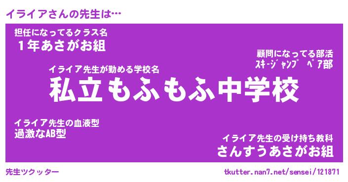 | 意味不明あだ名 | 『ペロリンイライア』『永久保存イライア』 |