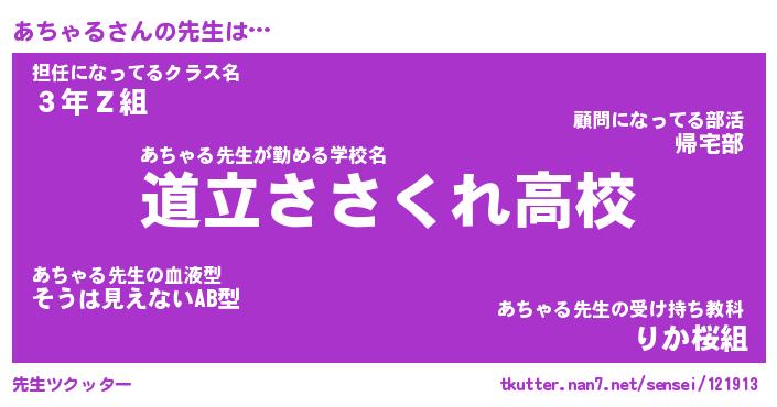 | 意味不明あだ名 | 『ペロリンあちゃる』『永久保存あちゃる』 |