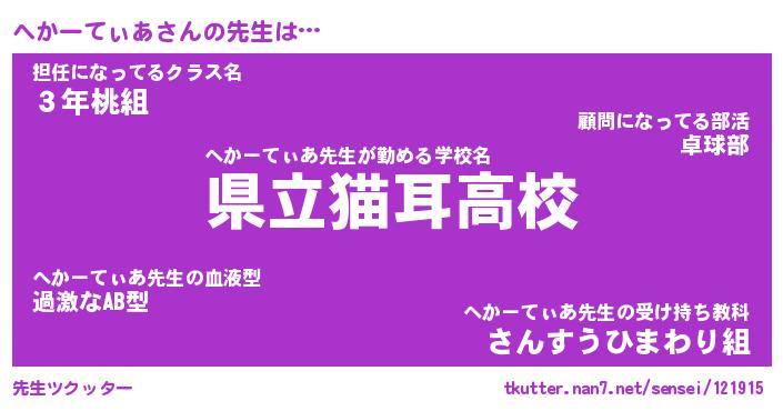 | 肩書あだ名 | 『へかーてぃあ社長』『へかーてぃあ班長』 |