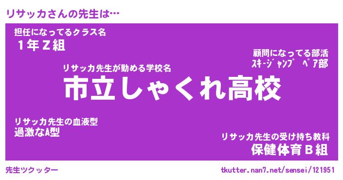 | 男性向けラノベタイトル風あだ名 | 『リサッカの憂鬱』 |