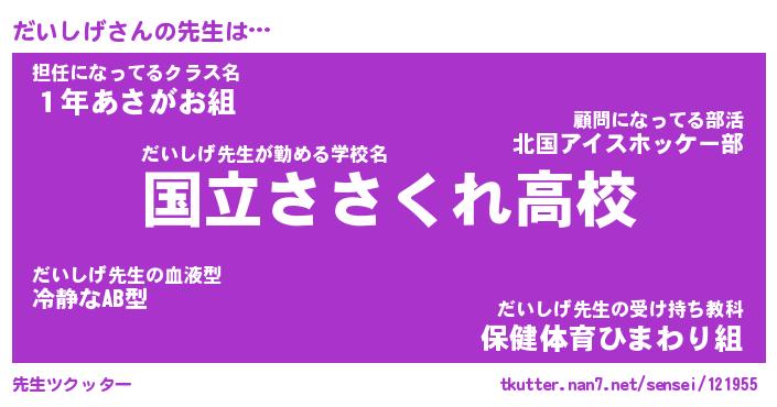 | 意味不明あだ名 | 『ペロリンだいしげ』『永久保存だいしげ』 |