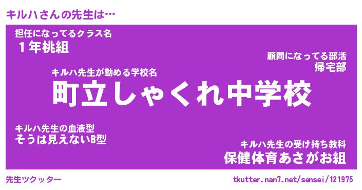 | ヘコむあだ名 | 『キルっふぃ~』『つくし』『キルお』 |