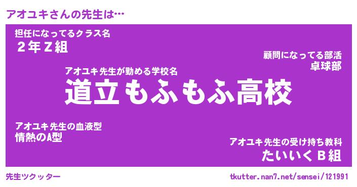 | ファンタジー風あだ名 | 『アオフェル』『エターナルアオユキー』 |