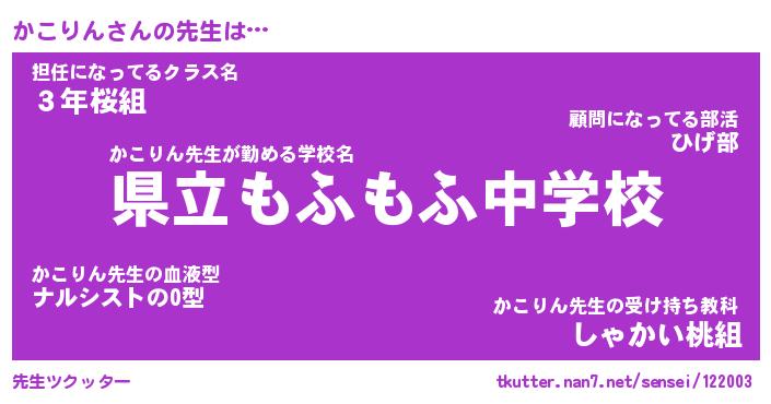 | 意味不明あだ名 | 『ペロリンかこりん』『永久保存かこりん』 |