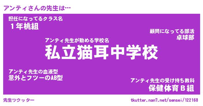 | ポケモン風あだ名 | 『アンチュウ』『アンテダネ』 |
