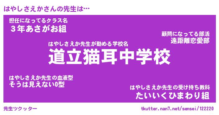 | 肩書あだ名 | 『はやしさえか社長』『はやしさえか班長』 |