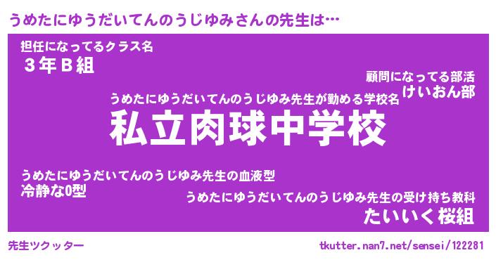 | 意味不明あだ名 | 『ペロリンうめたにゆうだいてんのうじゆみ』 |