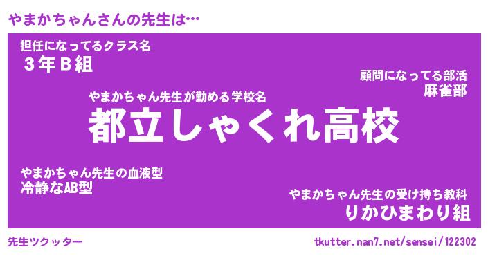 | 伝説のあだ名 | 『不死鳥のスナイパーやまかちゃん』 |