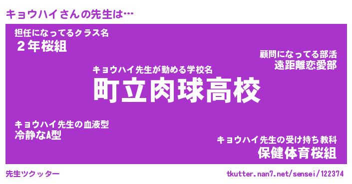 | ヒーロー風カッコイイあだ名 | 『スーパーキョウハイ』『暗黒騎士キョ』 |