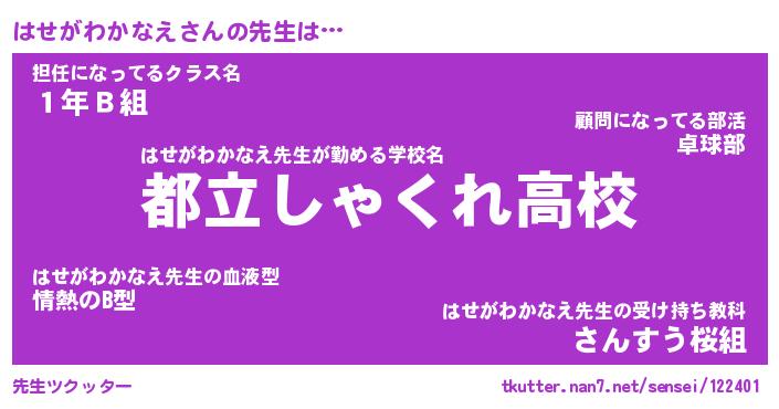 | 2回繰り返すあだ名 | 『はせはせ』『ははせせ』『おたおた』 |