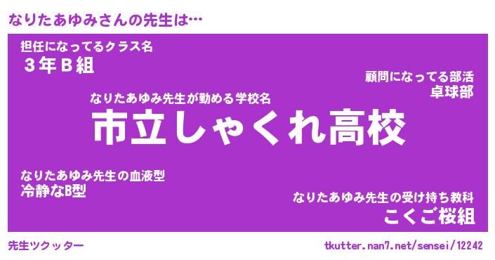 | 肩書あだ名 | 『なりたあゆみ御曹司』 |