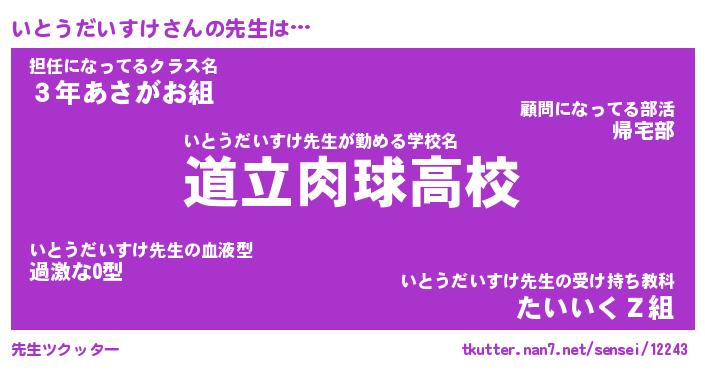 | 胡散臭い通販商品みたいなあだ名 | 『モテモテ間違いなしブレスレット…その名も「いとうだいすけ」』 |