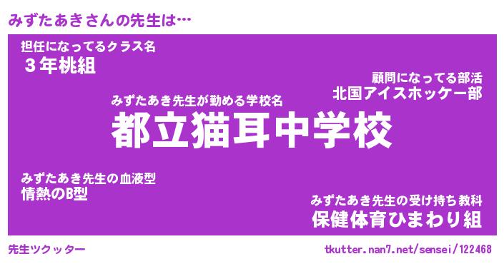 | ファンタジー風あだ名 | 『ミズフェル』『エターナルミズタアキー』 |