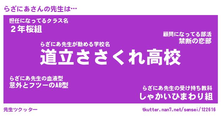 | 意味不明あだ名 | 『ペロリンらざにあ』『永久保存らざにあ』 |