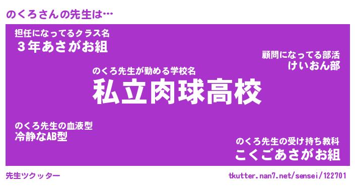 | ヒーロー風カッコイイあだ名 | 『スーパーノクロ』『ウルトラのくろマン』 |
