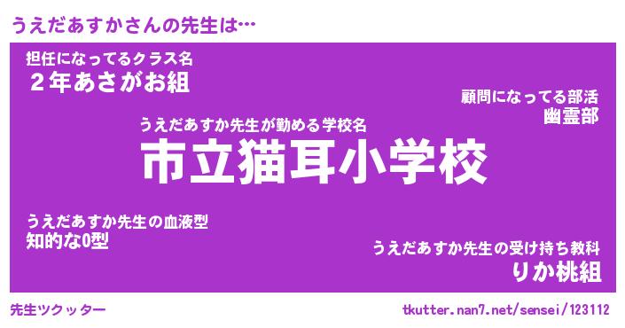 | ヘコむあだ名 | 『うえにー』『つくし』『うえぷりん』 |