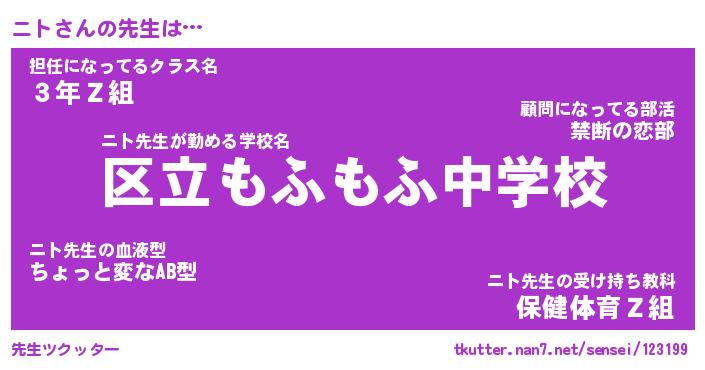 | ポケモン風あだ名 | 『ニトチュウ』『ニトダネ』『ヒニト』 |