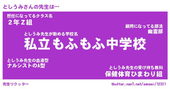 | ファンタジー風あだ名 | 『トシフェル』『エターナルトシウミー』 |